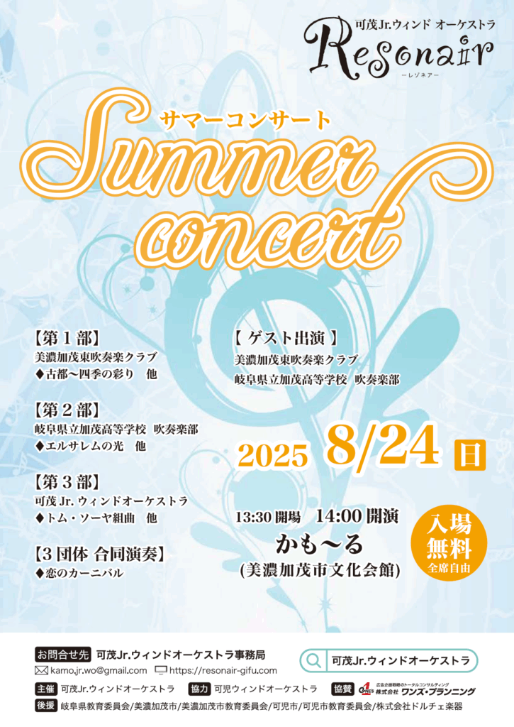 | 後援 | 岐阜県教育委員会/美濃加茂市/美濃加茂市教育委員会/可児市/可児市教育委員会/株式会社ドルチェ楽器 |